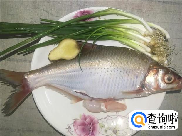 准备好所有原材料:新鲜的鳊鱼一条、葱五根、老姜适量。
