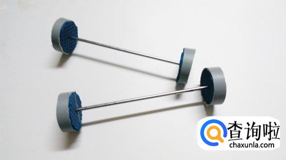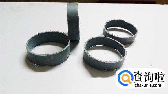然后,从PVC管上锯下4个相同大小的圆环,并从人字拖上剪切下圆片填充到里面,再用铁丝相连,做成轮子。
