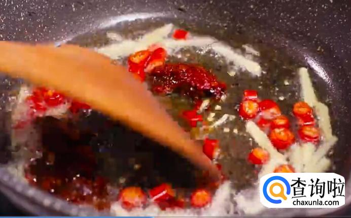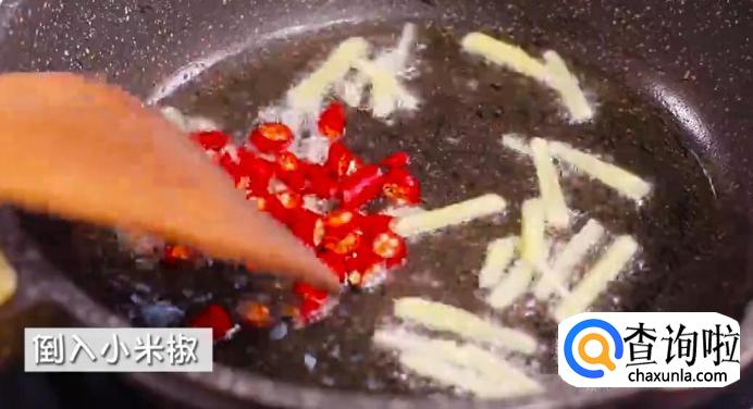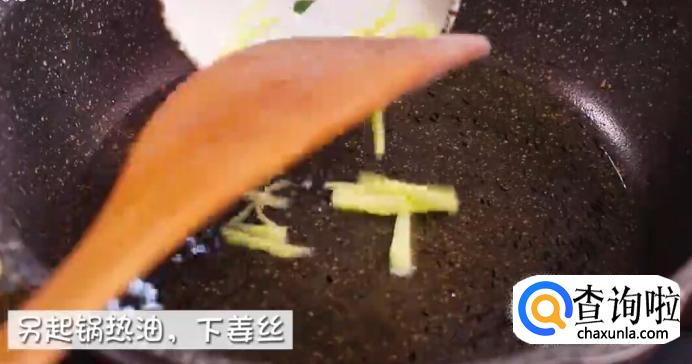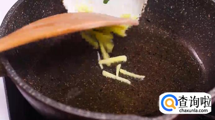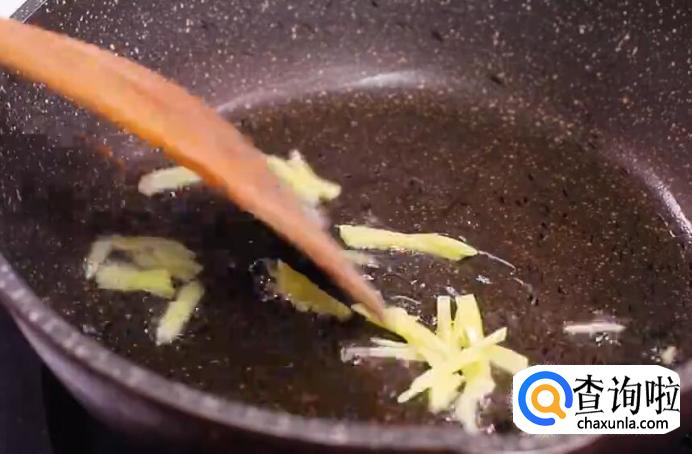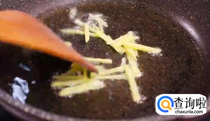 锅里放入适量的油,油热后放入之前切好的姜丝进行翻炒。