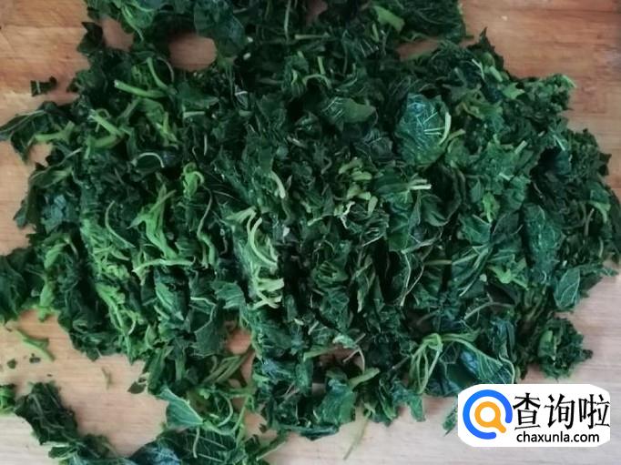 把烫好的野苋菜去水,用刀剁碎待用。我这里用的是洗净烫好的野苋菜,因为野苋菜生长在野外,为了防止有肉眼看不见的虫卵,最好用开水烫一下再用来做馅。