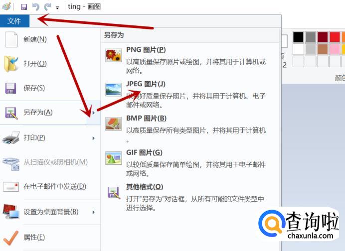 点击“文件”,选择“另存为”,点击“JPG格式图片”。