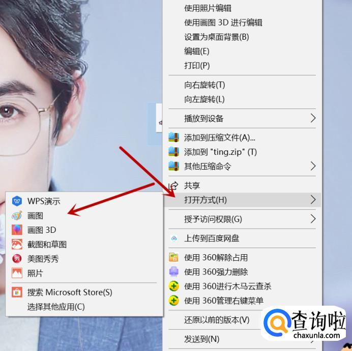 首先,用鼠标单机一个png格式的图片,点击右键。选择“打开方式”,进入“画图”界面。