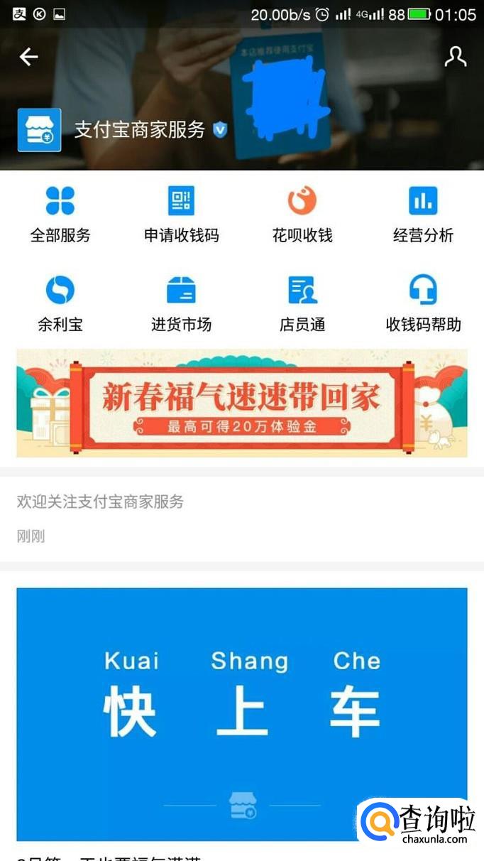 打开支付宝,找到最前面的搜索栏,输入“商家服务”,搜索,