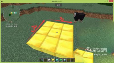 选择任意一种材料,砌成3*3的一层基座。