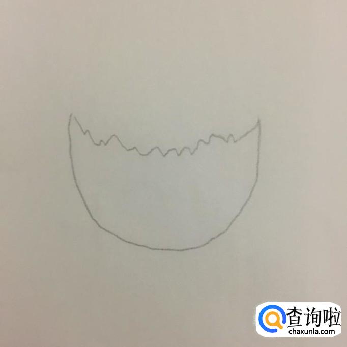 接着画出鸡蛋的破裂部分,如下图所示。画这部分的时候可以把他想象成在画一个半月牙月亮的形状就可以了。