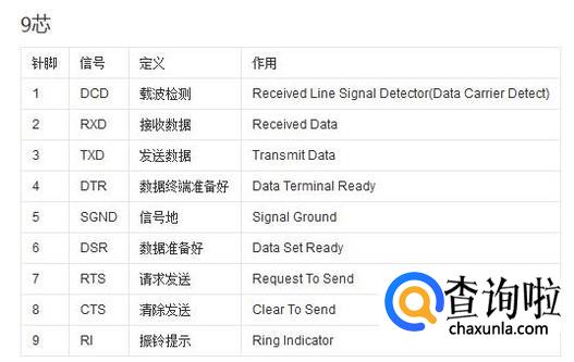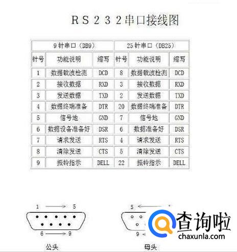 一般生活中出现的RS232串口一般有9脚型和25脚型两种,它们各针脚的作用如下图所示: