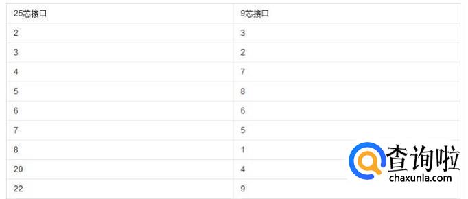当串口接线为9脚接25脚,或25脚接9脚时,则接线对于规律对应如图