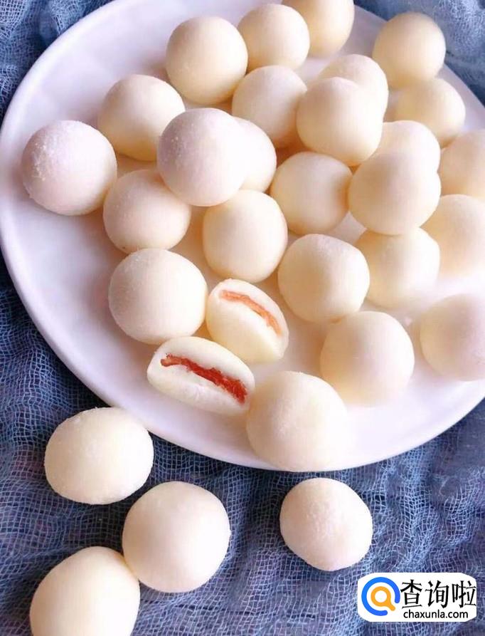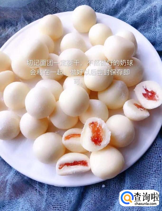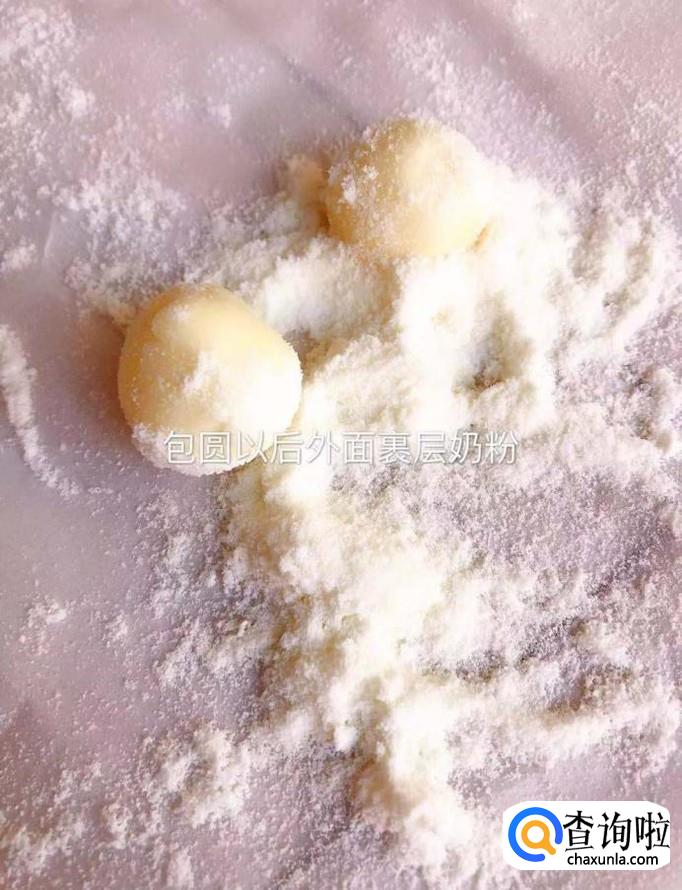 接着搓揉成圆,表面上裹上一层奶粉,如下图所示。