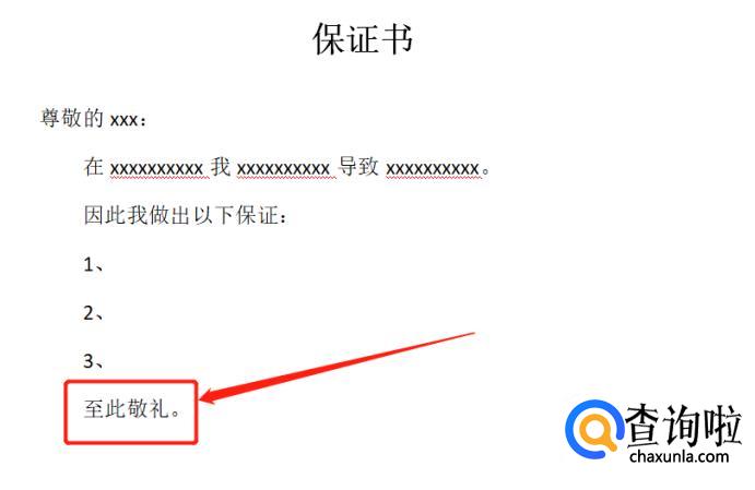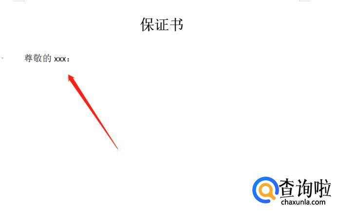 在正文开始前,顶格写上查收保证书的一方尊称,例如:尊敬的xxx、xxxx公司。有职称的可以写职称,例如:李经理、刘老师等。一定要有礼貌性的用语,让人看到就心生好感。