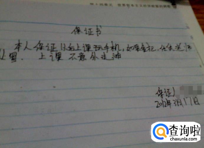 写完正文内容后,在右下方写上姓名和时间。这样一篇保证书就完成了。