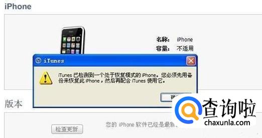 当屏幕变黑时,松开电源按钮并继续按住主屏幕。 在计算机上的iTunes检测到iPhone处于恢复模式。