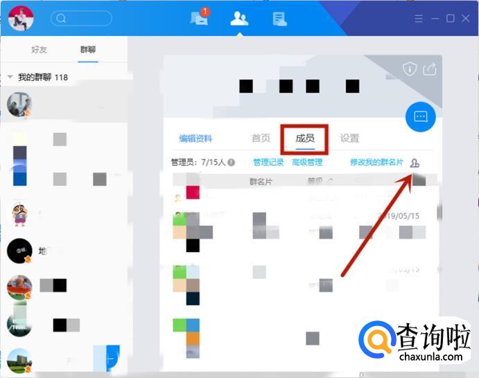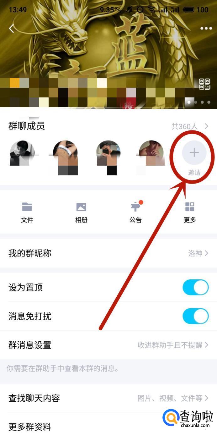 进入之后,在成员页面点击图示位置邀请好友按键。
