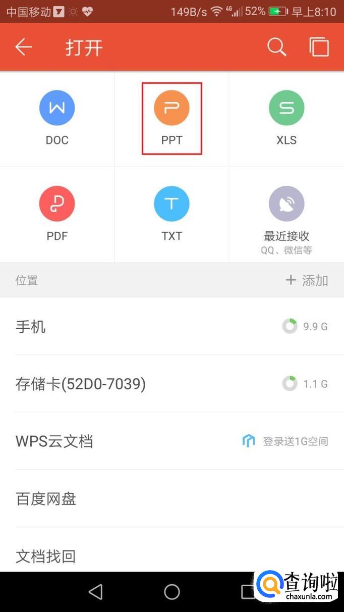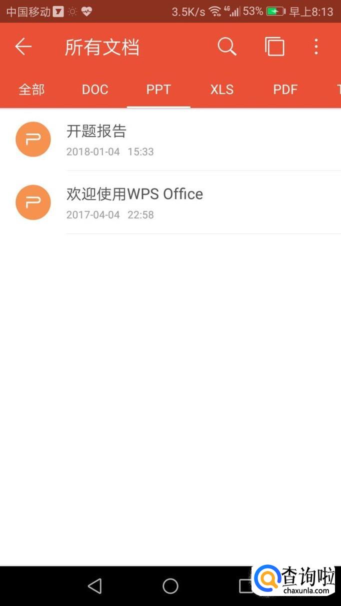 选择"ppt"类型,软件会自动搜索所有手机中的ppt文件,然后你可以选择需要打开的文件。