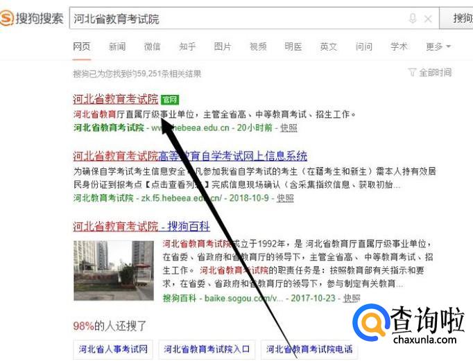 进入之后,搜索该省的教育考试院,以河北省为例,如图所示。