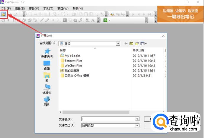 “我们先在电脑上安装CAJVIEWER”阅读器,然后打开阅读器,在菜单栏上点击“文件”。