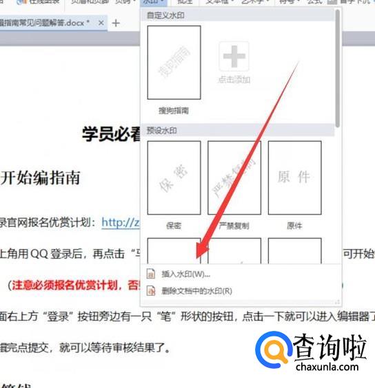 打开之后,点击“插入水印”,如图所示。