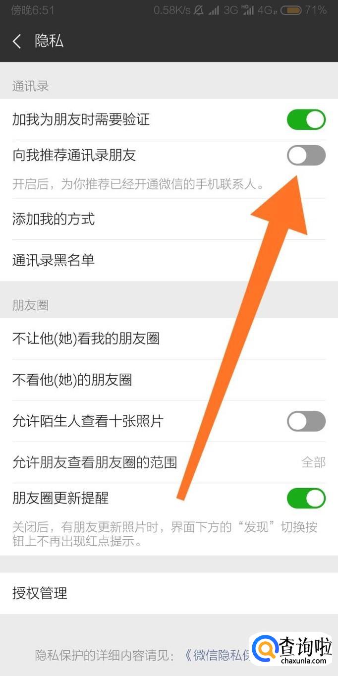 最后就可以设置“向我推荐通讯录朋友”功能了。
