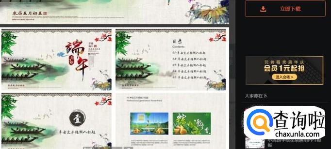 点击进入你选中的模板类型后再“下载”,下载完成后点击进入你就可以使用这个PPT模板了