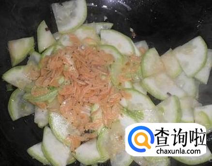 西葫芦快炒熟时,将炒熟的虾皮倒入锅中,翻炒均匀,淋入少许酱油,翻炒几下,就可以出锅了。