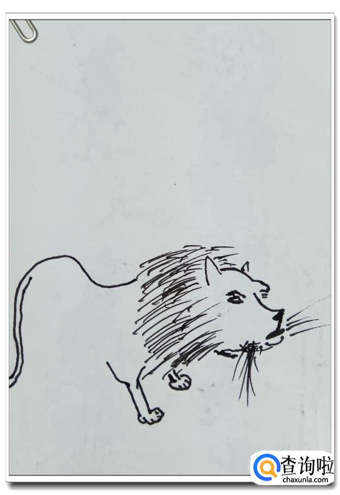 再用曲线和线段,画出狮子的两条后腿,要注意一下和两条前腿的位置关系,狮子正在悠闲的走路呢。