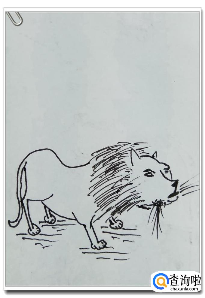 再用一些长短不一的线条,刻画出地面,这样才更有立体感,狮子主要是在地上奔跑的动物。