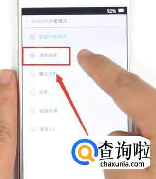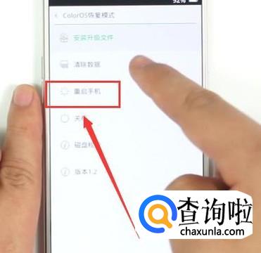 在清除数据之后,返回上一界面,点击“重启手机”即可,如图所示。