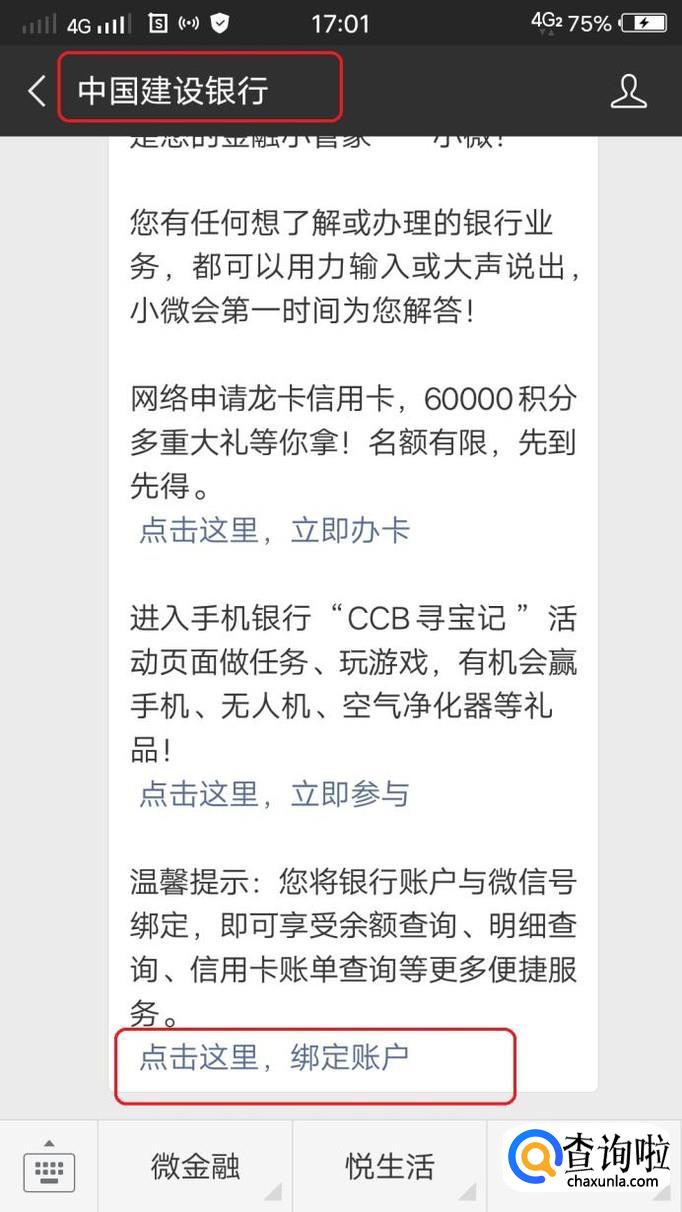 微信作为现在最流行的网络通讯工具,除了可以用来聊天交友,还有很多很实用的功能,比如可以用微信关注各家银行公众号,绑定信用卡,这样就可以实时了解自己的信用卡账单及消费情况明细,简捷又方便。下面我就以建设银行为例,来讲讲微信绑定信用卡的方法。