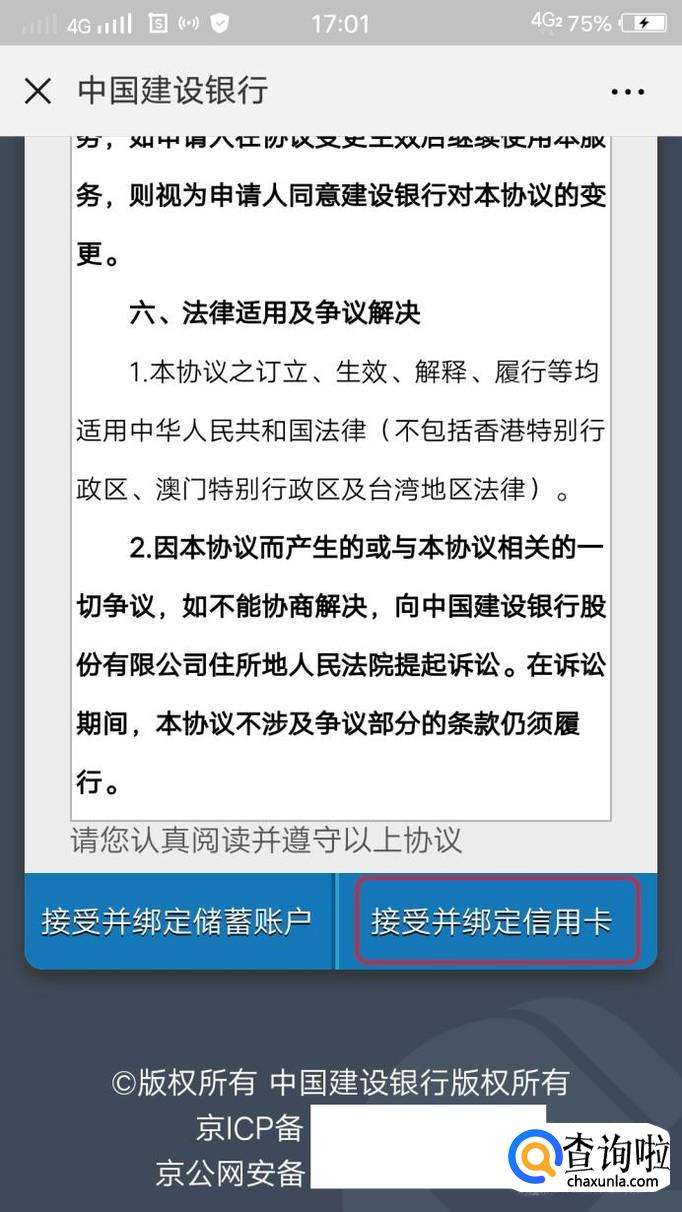 阅读协议以后,点击“接受并绑定信用卡”。