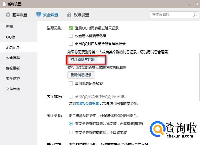 打开“安全设置”页面后,在该页面的中间,找到“消息管理器”,并点击打开。