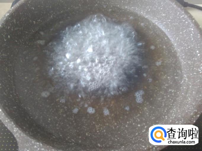 锅里装适量的水煮沸,然后放猪大肠进去灼一下水。