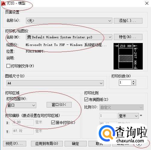 如图所示,命令窗口显示"PLOT 指定对角点"。拾取窗口对角点,单击鼠标左键确认。