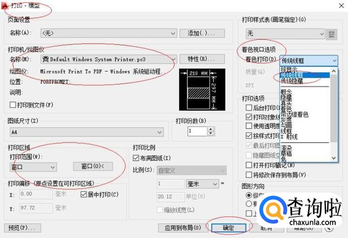 如图所示,选择"着色视口选项→着色打印→传统线框"项。本例到此结束,希望对大家能有所帮助。