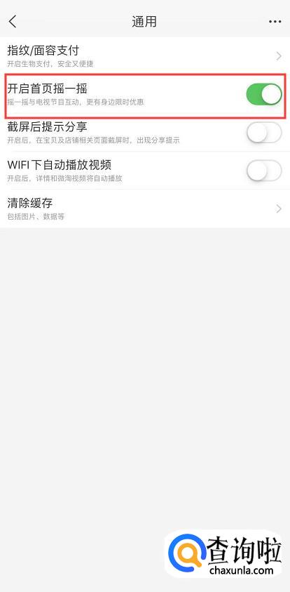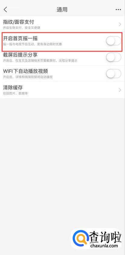 关闭“首页摇一摇”后面的按钮即可关闭摇一摇功能。