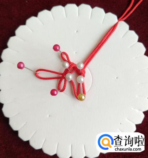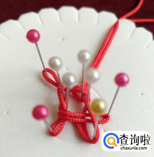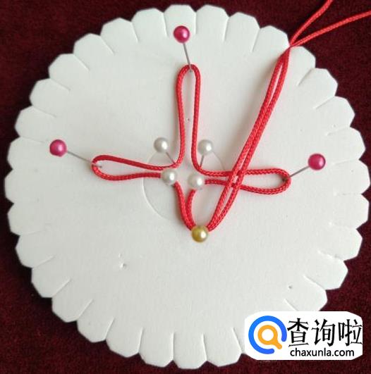 特别提示:在刚开始编制平安结时,一定要用珠针将绳子固定好,避免之后平安结变形。