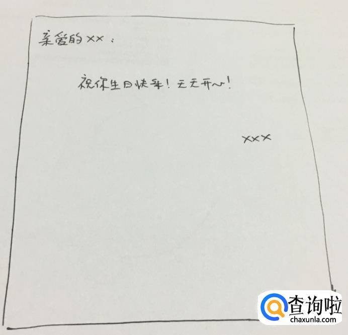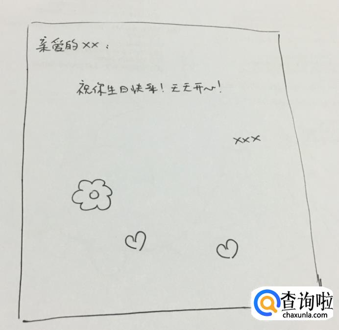 写生日卡片的第一步是称呼,称呼要第一行顶格写。称呼是指你对收贺卡人的称呼,可以直接写对方的名字,也可以加上表示关系的修饰语。