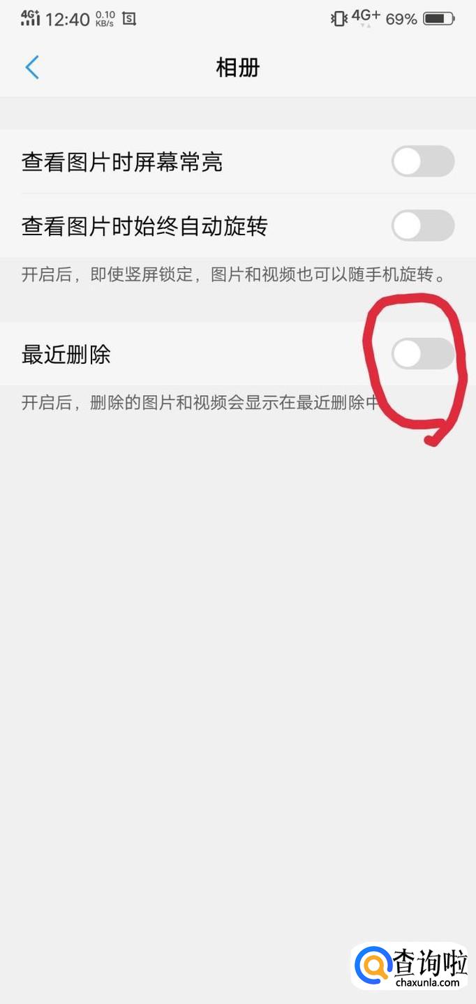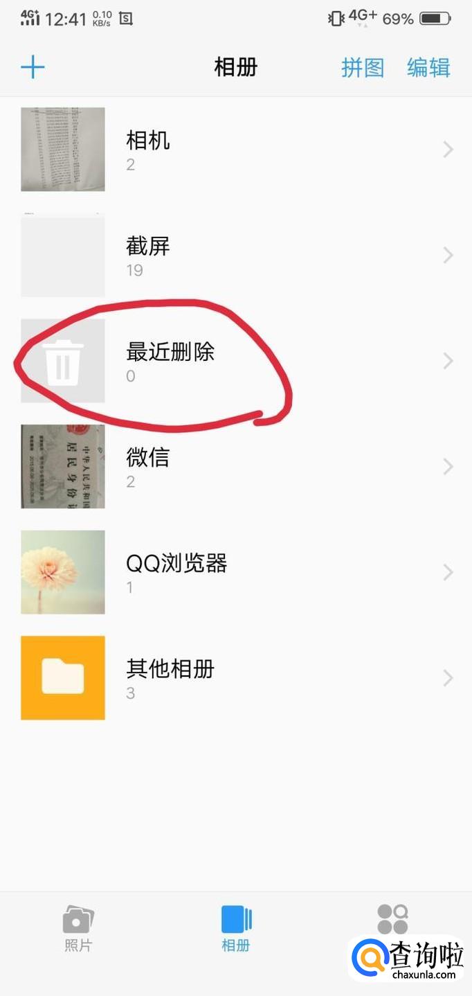 这样做好后在相册里就会出现最近删除的一项了,里面有我们从打开开关后保留的图片。