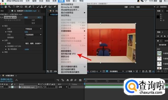 找到窗口选项之后,再打开窗口选项中的稳定选项。你可以看到稳定选项中有这两个主要选项:稳定、跟踪。