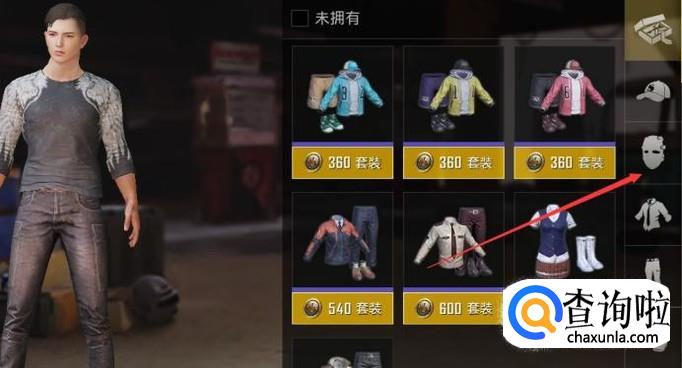 进入之后你会发现有套装,但是不用理,直接找到面具的那个对话框,然后点击进入,如下图