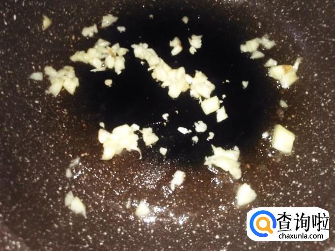 再用一个锅,起火下油,放蒜米进去爆出味来,然后把杏鲍菇里的汤水倒进去。