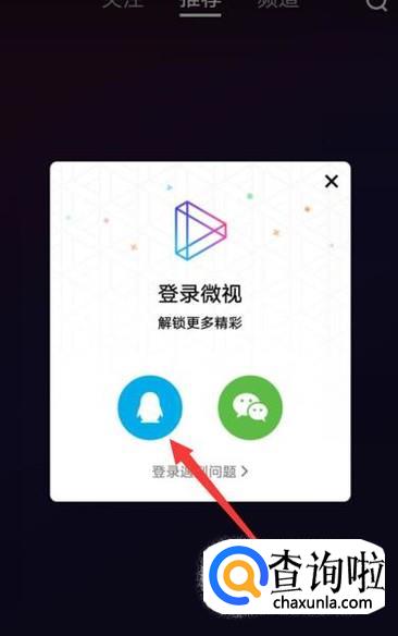 进入之后,选择QQ或者微信登陆的方式,然后登陆微视,如图所示。