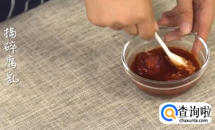 切葱段、姜片;用勺子捣碎腐乳备用。
