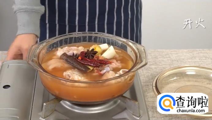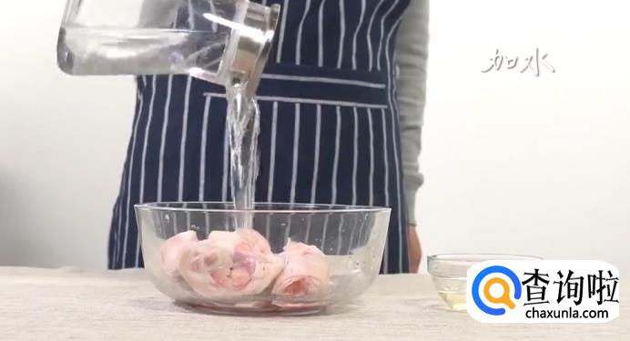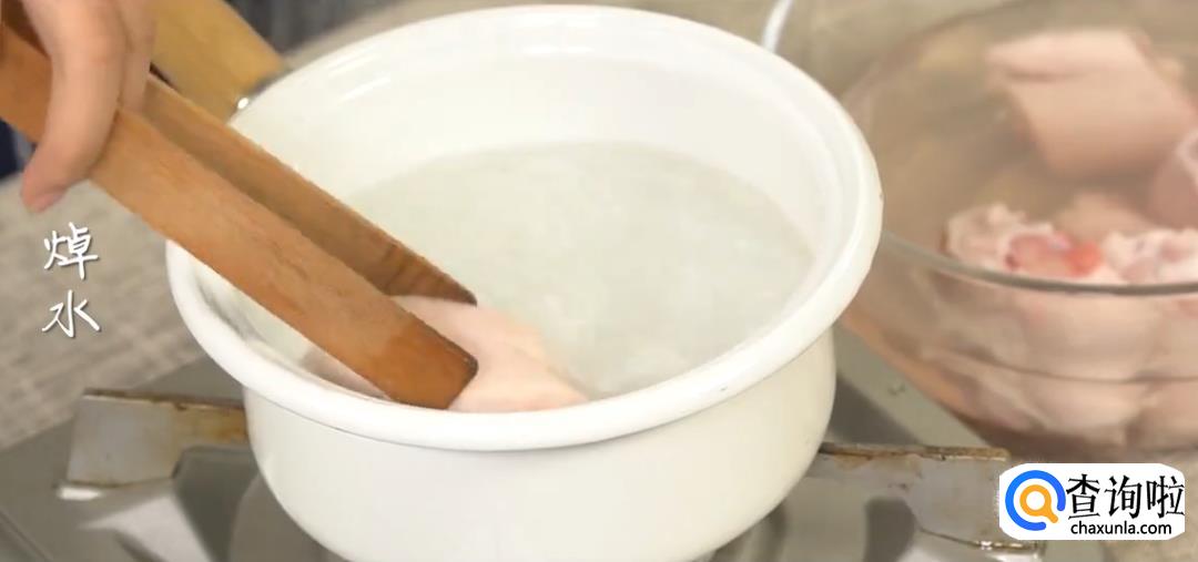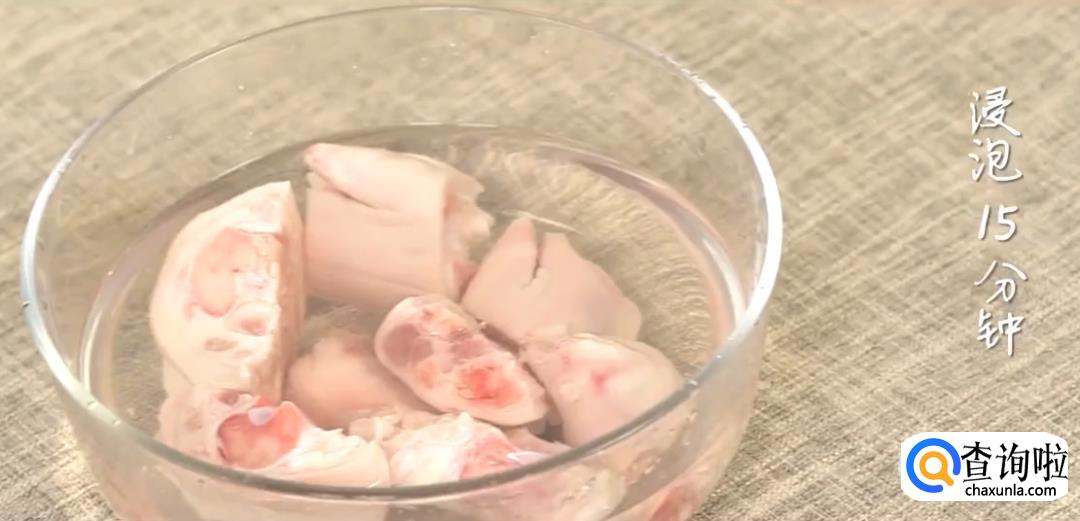 起锅烧水,待水沸后,放入猪蹄焯水后捞出。