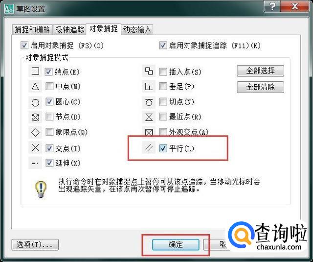 在打开的设置页面中,点击勾选“平行”复选框,然后点击页面底部“确定”按钮。