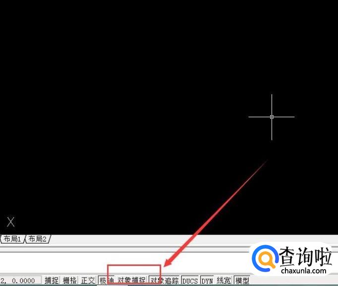 首先,打开CAD软件主页面窗口,点击窗口底部“对象捕捉”按钮,使其处于打开状态。