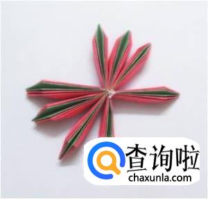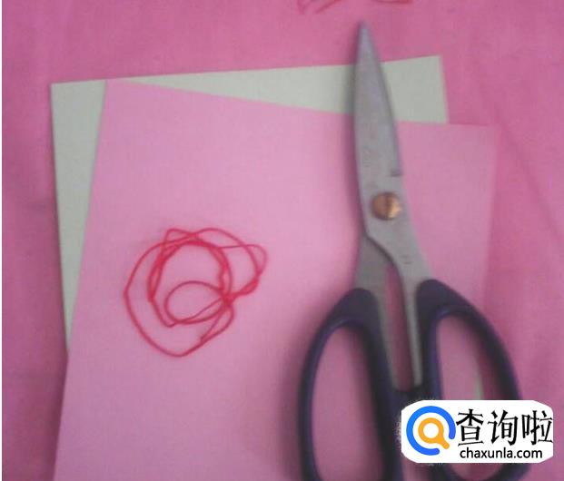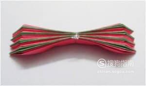 用上述的方法,折完准备的彩纸。然后用细线把所有的彩纸绑成一组,2张粉色的和1张绿色的插在一起,为一组。