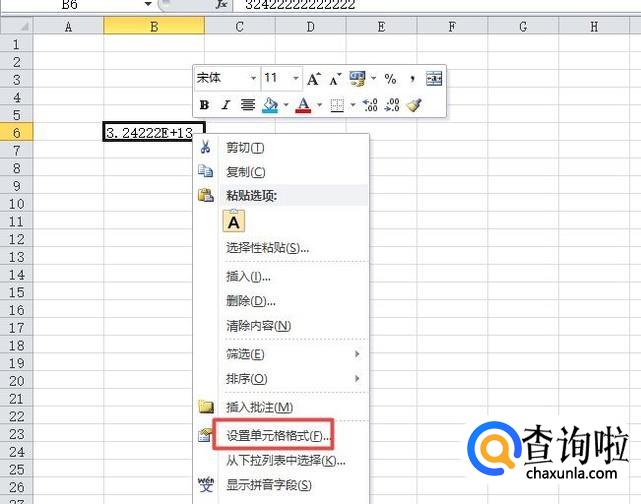 然后我们选中这个单元格,之后我们右击选择设置单元格格式;