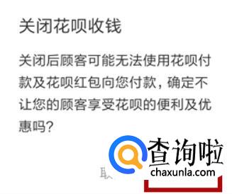 这时候看到花呗收钱后面有一个开关,点击关闭。
