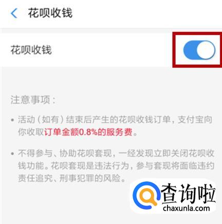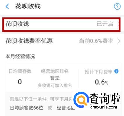 现在就会看到已开启的花呗收钱选项,点击打开。