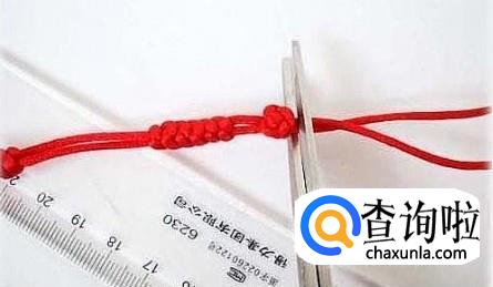 然后把多余的红绳剪掉,用打火机烧断尾部线头,金刚结手链就做好了。