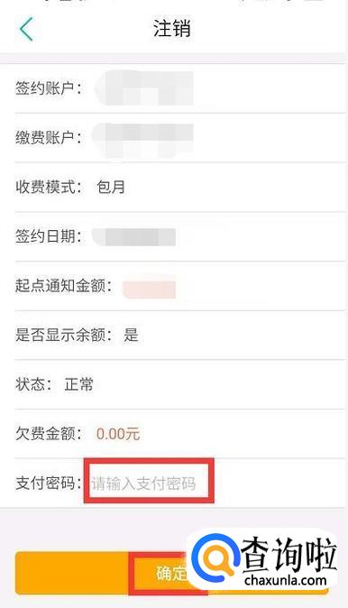 最后输入支付密码,点击确定,即可取消短信服务。